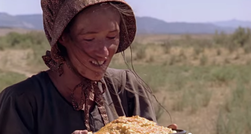 While crossing the plains, trials of different kinds were our portion. Many fainted and fell by the wayside. Many a mound was dug and a fervent prayer uttered for those gone and those left, that God would spare them to reach Zion. We were so fatigued and hungry that we would sometimes stop and get rawhide to chew on, as our food was diminished. We tried to keep a little flour as long as we could to make porridge for the children; at first it was biscuits; then pancakes; then porridge. Often we would cook a hide, or piece of it, to get a little strength; it being winter, we could not find weeds to help out. One time, mother and family saw a young man chew his finger ends before dying. A little incident I well remember occurred on the journey. A cow died with calf, and mother got the calf head and roasted it in the campfire. The next day we took it along with us and had a great feast of it.