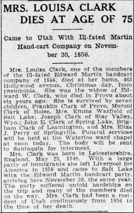 The story I’m about to tell is from the autobiography of Louisa Melor Clark, found on FamilySearch and contributed by Reva L Hansen Brooks. I will leave the story as written, but will add a few details or pictures along the way.