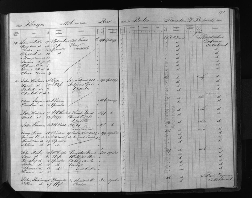 We left Liverpool under the leadership of Edward Martin on the ship Horizon. There were 856 saints in all who were coming to North America. Storms arose and the ship tipped to and fro and delayed us from a straight voyage; however, on the evening of 28 June, 1856, the ship cast anchor in the Boston Harbor. By this time my mother was getting better and able to get around some, so we joined the Saints and went west to Iowa. After landing we took what might be called cattle cars, which were thought good enough for Mormons, until we reached Iowa. We remained in Iowa City from July 8 to July 28, 1856, where my father secured work, and with the means was able to get two handcarts and some food and clothes to make the journey across the plains.